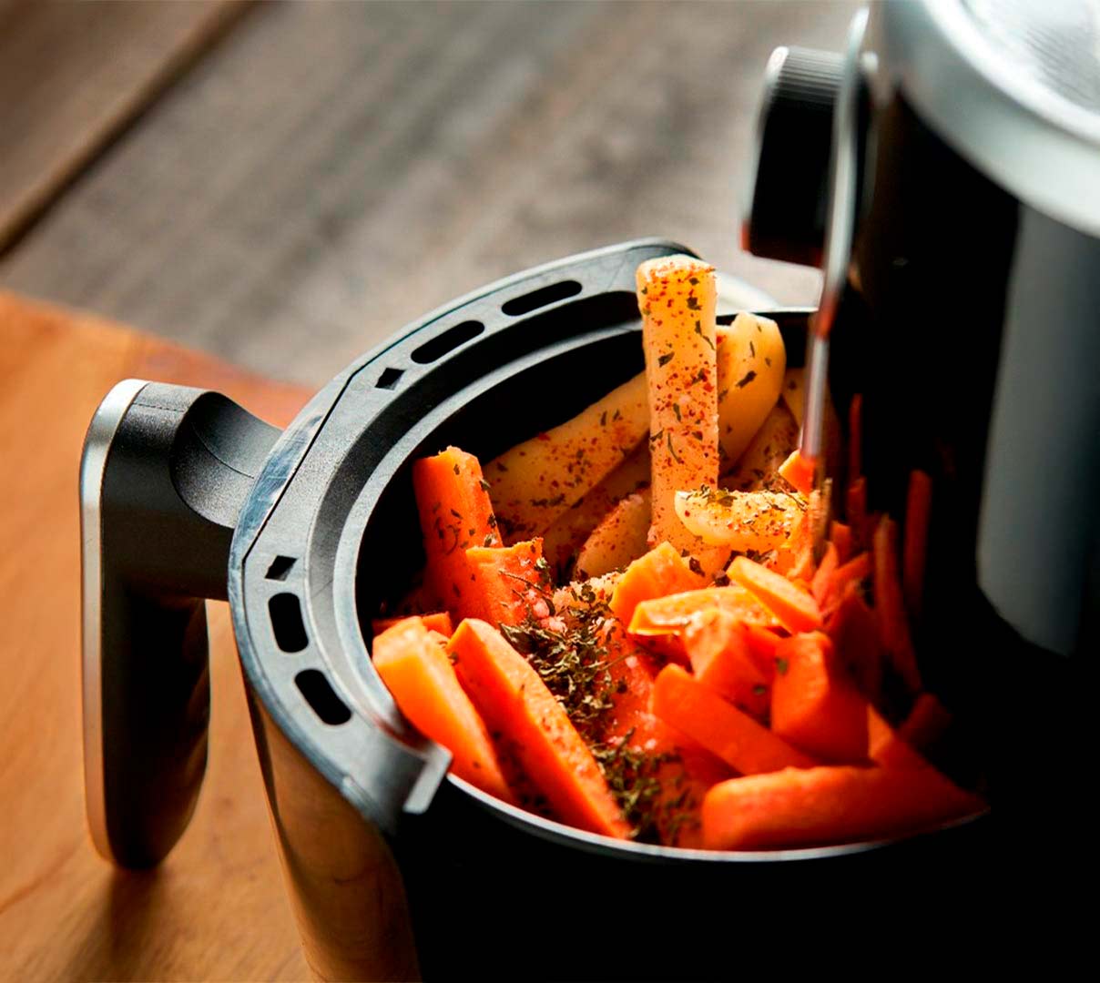 Mangler du tilbehør, er mulighederne mange. Sprøde kartofler, gulerodsfritter eller frosne grøntsager får ekstra smag og struktur i airfryeren – nemt, billigt og lækkert.